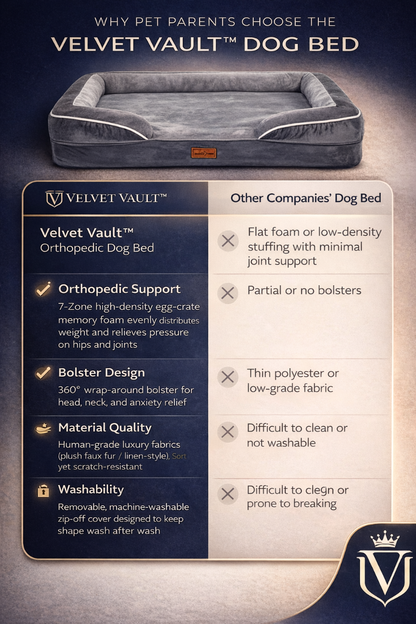 We believe an orthopedic dog bed should elevate your home, not disrupt it. With a sleek silhouette and modern designer color palette, the Velvet Vault Premium Orthopedic Dog Bed blends seamlessly into contemporary interiors.